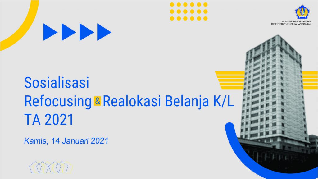 Guna memberikan bekal pemahaman dan semangat yang sama kepada Kementerian/Lembaga dalam melaksanakan pesan dalam Surat Menteri Keuangan tersebut, Direktorat Jenderal Anggaran mengadakan Sosialisasi Refocusing dan Realokasi Belanja Kementerian/Lembaga TA 2021 pada Kamis, 14 November 2021. Dalam sosialisasi yang dilakukan secara daring ini, Askolani, Direktur Jenderal Anggaran membuka sosialisasi dengan menyampaikan pentingnya peran seluruh elemen Pemerintahan dalam mengatasi dampak Pandemi COVID-19. Refocusing dan Realokasi Belanja Kementerian/Lembaga perlu dilakukan bukan hanya untuk mendukung alokasi anggaran program vaksinasi secara nasional, tetapi juga untuk penanganan pandemi COVID-19, dukungan anggaran perlindungan sosial kepada masyarakat serta percepatan pemulihan ekonomi nasional. Peraih gelar Master of Arts Economics and Banking dari Universitas Colorado ini juga menyampaikan aspirasinya agar proses refocusing dan realokasi belanja dapat diselesaikan sesuai kerangka waktu yang telah ditetapkan agar kemudian Kementerian/Lembaga dapat segera kembali fokus melaksanakan tugas dan fungsi dalam pemerintahan.