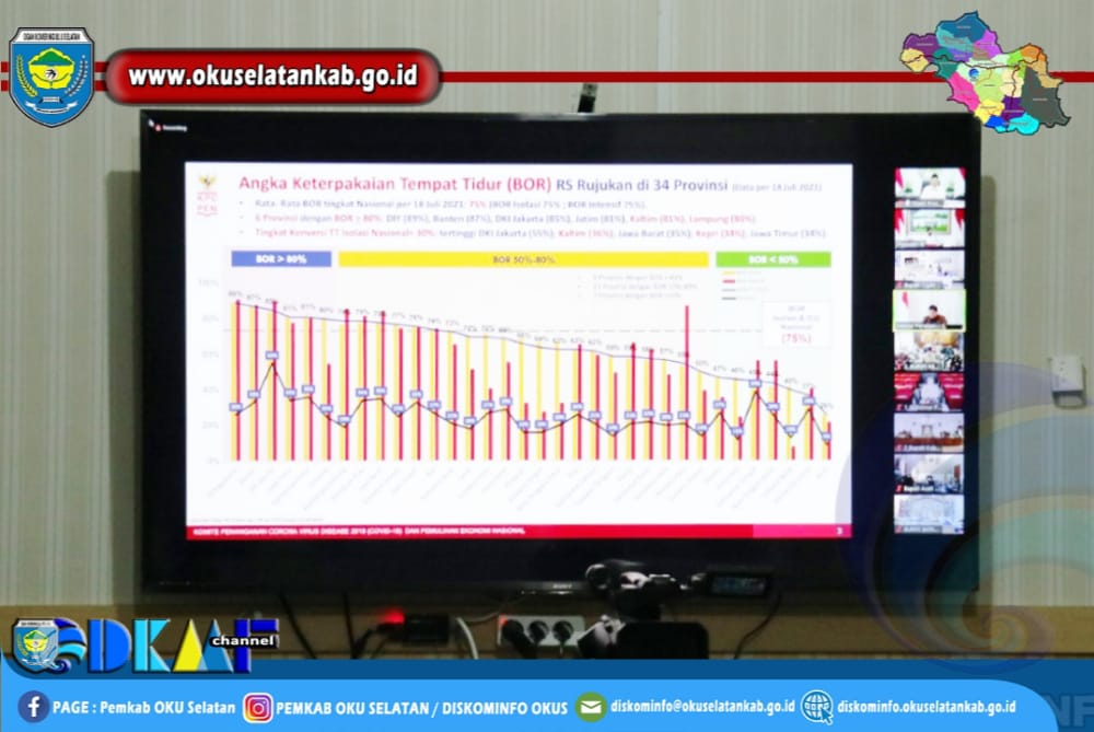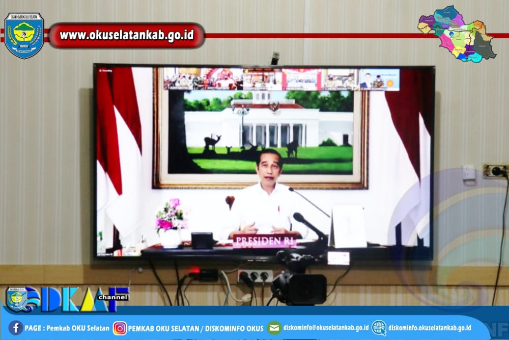 MUARADUA – Wakil Bupati Ogan Komering Ulu Selatan (OKUS), Sholehien Abuasir, S.P., M.Si., didampingi Kepala Badan Penanggulangan Bencana Daerah (BPBD) OKU Selatan, Doni Agusta mengikuti video konferen bersama Presiden Joko Widodo di Ruang Vidcon Dinas Kominfo OKU Selatan, Senin (19/07/2021) siang.